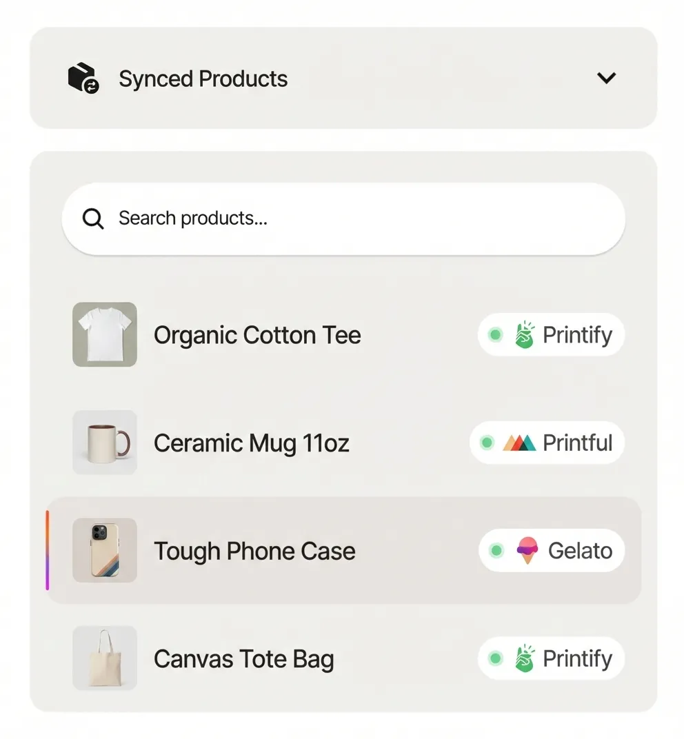 Never manually edit a customer file again. Our engine automatically adapts the generated AI design to your exact print area and syncs the print-ready file directly with your POD service. Your workflow stays automated from checkout to fulfillment