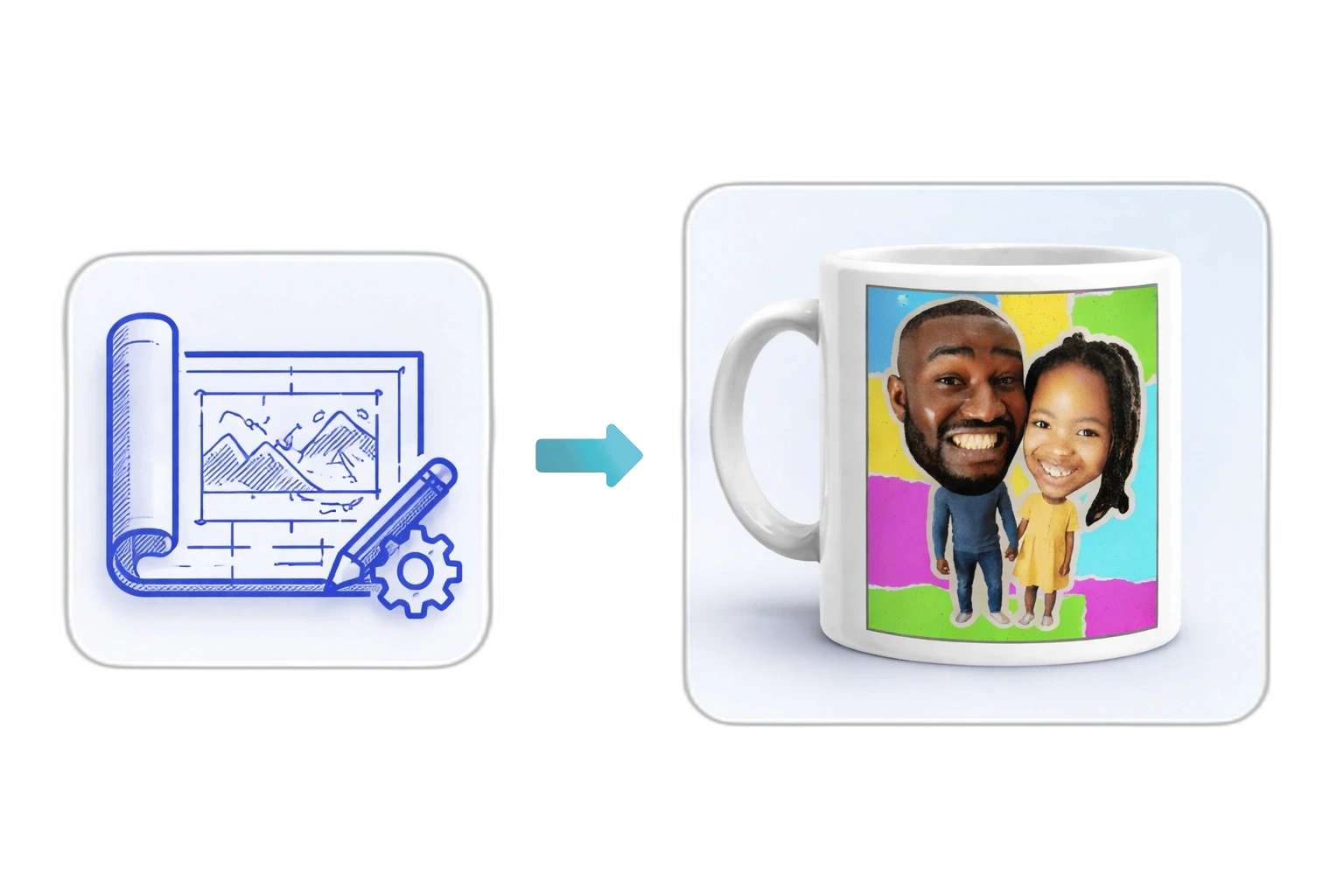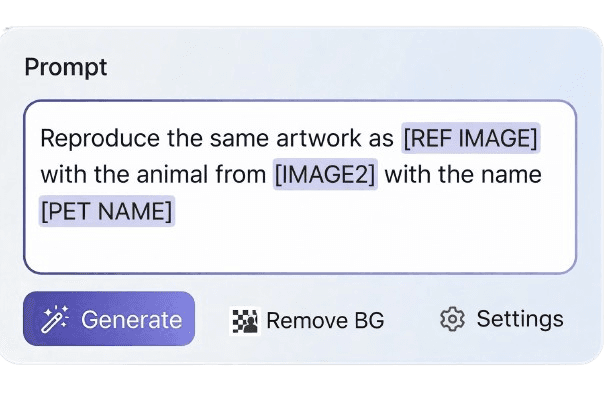Never manually edit a customer file again. Our engine automatically adapts the generated AI design to your exact print area and syncs the print-ready file directly with your POD service. Your workflow stays automated from checkout to fulfillment
